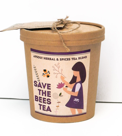 Τα βότανα μπάινουν σε βιοδιασπώμενα φακελάκια κι όλα μέσα σε ανακυκλώσιμο χάρτινο δοχείο. Επισυνάψαμε σε εμφανές μέρος της συσκευασίας φακελάκι με σπόρους μελισσοκομικών φυτών: Λεβάντας, Μελισσόχορτου, Μαντζουράνας, Δεντρολίβανου, Θυμαριού, κ.α. Όταν ολοκληρωθεί η χρήση του ως δοχείο τσαγιού, προσθέτοντας χώμα μετατρέπεται σε γλάστρα και φυτεύετε σε αυτό τους σπόρους!