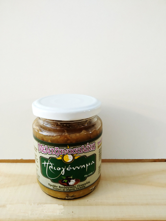 Ώριμες επιλεγμένες μελιτζάνες από τα κτήματά μας ψήνονται στα κάρβουνα. Ακολουθεί άμεσα η αφαίρεση του φλοιού της και σε ανοξείδωτο δοχείο ομογενοποιούν την ψημένη μελιτζάνα με τα υπόλοιπα υλικά (ξύδι- εξαιρετικό παρθένο ελαιόλαδο-σκόρδο-αλάτι Μεσολογγίου). Γίνεται η εμφιάλωση σε αποστειρωμένα βάζα και ακολουθεί η παστερίωση.