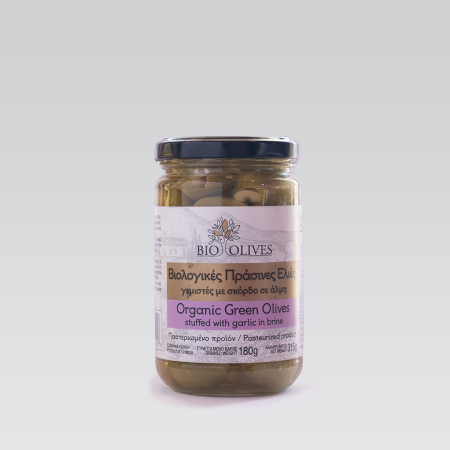 Βιολογικές πράσινες ελιές γεμιστές με σκόρδο, 180γρ.